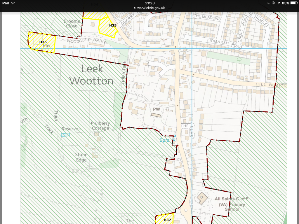 We are making this submission in order that an error concerning the designation of our land and the drawing of the Leek Wootton Parish boundary made in the Local Plan made in 2017 can be rectified. In making this submission we have the full support of the Leek Wootton Parish Council and especially that of the Chair [named] who has previously made some representations to WDC Planning department on our behalf. We purchased the land in question in 1984 when the houses in The Elms were built. Six house owners were each sold about an acre of land behind the houses as paddocks. We own one of these pieces of land. The land in question was one area previously owned by [name], and was all designated in the same way and sold to be used in the same way as paddocks adjoining the gardens of the six houses. We all use it for the purpose of an extension to the garden. We have worked tirelessly on our land since 1984, cutting the grass, weeding, setting flowers, trees and shrubs, and using it to walk in, sit in and as a play area for our children and now our resident grandchildren. On the current local plan (since 2017) our land is designated as green belt land but the land belonging to the other five houseowners is not. This results in the village boundary line being the boundary between our land and that of our Neighbour. Our land is therefore outside of the village boundary. The Parish Council together with ourselves consider this to be a mistake and an anomaly and that all of this area of land behind the houses should be designated in the same way. We all use it for the purpose of an extension to the garden. We have been trying since 2017 to have this anomaly rectified but have been consistently advised that we would have to wait until the Local Plan is revised again.We understand that this opportunity exists now and we are asking that in the New Plan our land be included in the Village boundary and be designated in the same way as our neighbors' land. We are attaching 2 Plans which identify the land in question and the existing Parish boundary. Also a photograph of the land with the fence in the background which currently defines the Parish boundary, We spoke at length with [named] Policy Planner at Stratford on Avon District Council who advised us that we could make this submission and our Representation by email as none of the online designated Forms were relevant to our purpose. In his email reply to [Councillor], he did state ``My assumption matches yours – I think this was most likely simply an anomaly when the boundaries were drawn.``