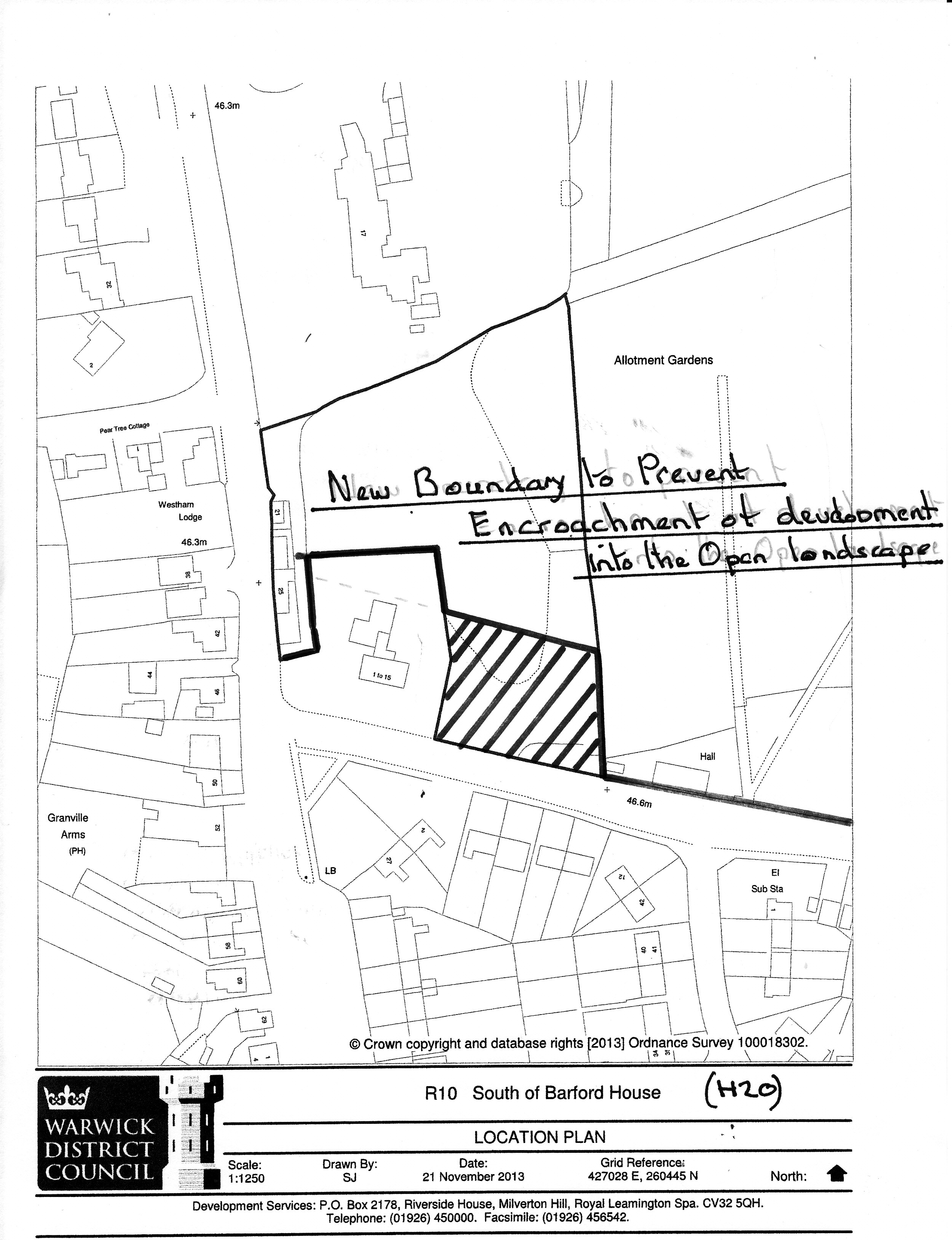 It states that the land is adjacent to a listed park and garden it has always been part of Barford House parkland and the boundary was formally approved by the District this year.
