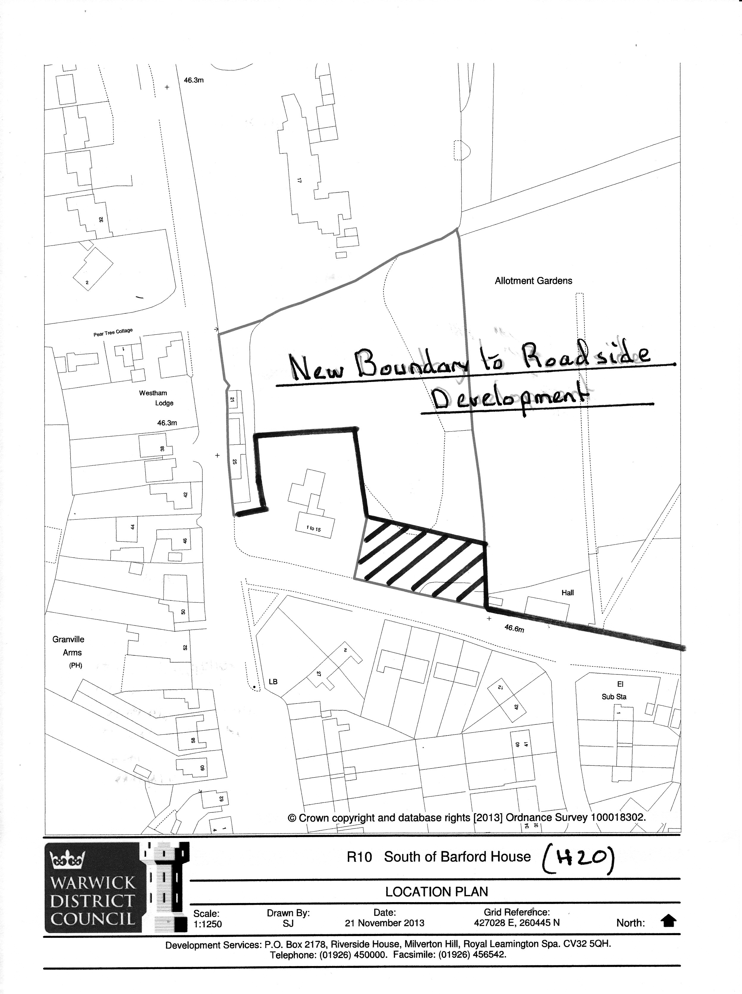 In 1981 24 dwellings were refused and upheld on appeal "unacceptable effect on the form and character of the village and open setting of Barford House" the inspector also said that the council would find it difficult to resist similar proposals on the other parts of the open area ie the allotments.